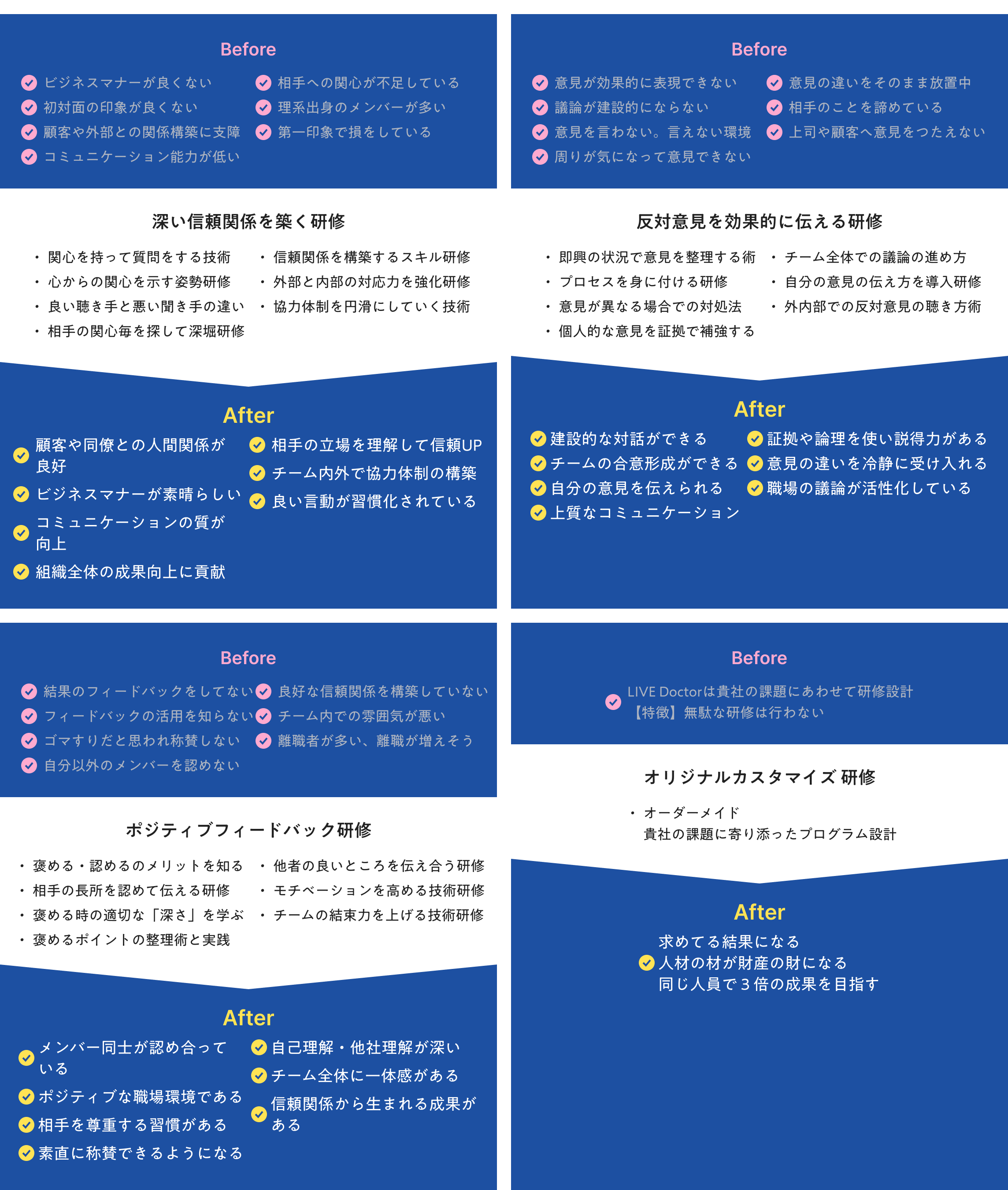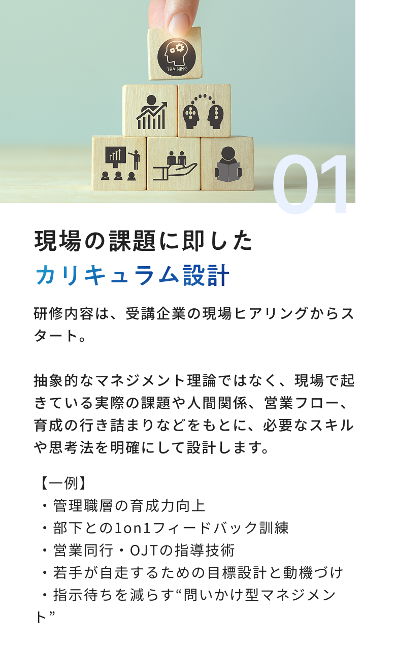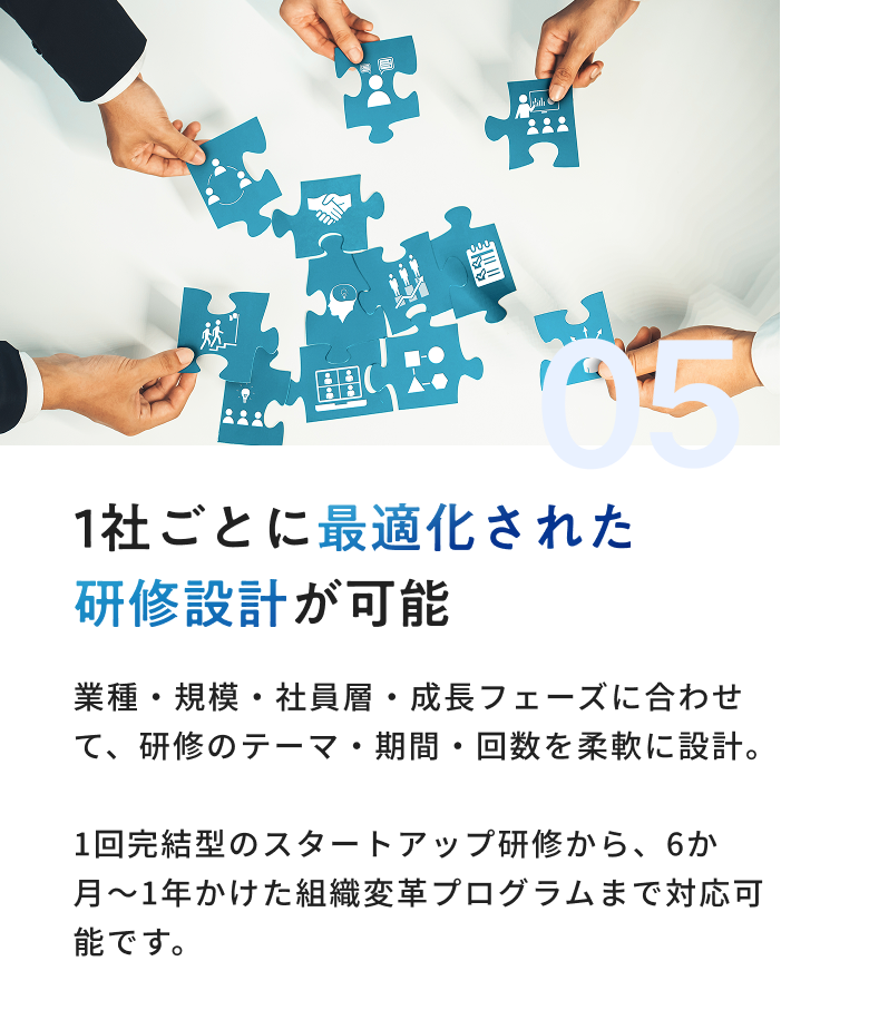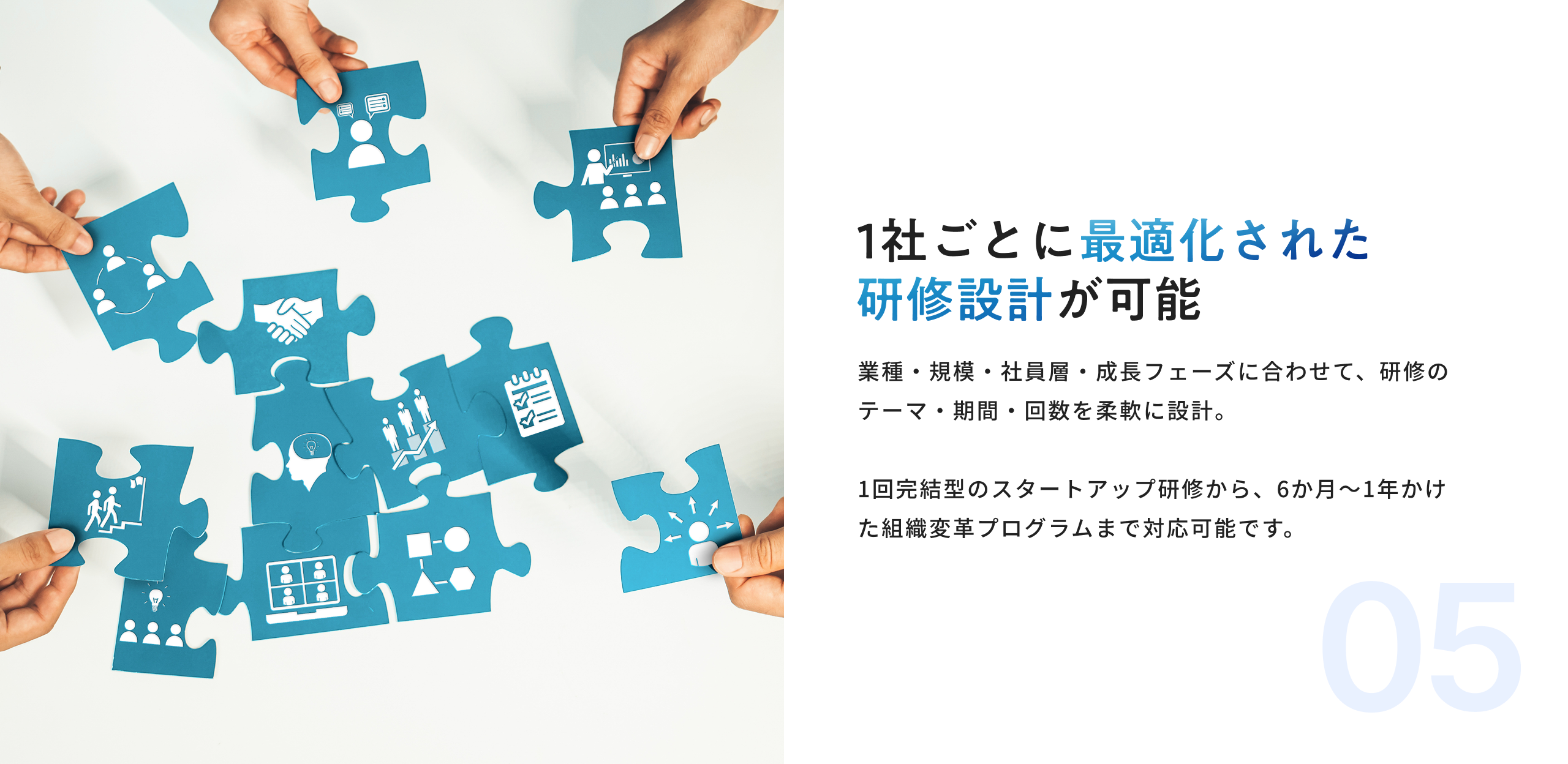 はい、お約束いたします。貴社の課題は一つとして同じものはありません。事前にお時間をいただき、貴社の歴史、文化、そして社員様の声に深く耳を傾け、貴社のためだけの最高のプログラムを心を込めて作り上げます。